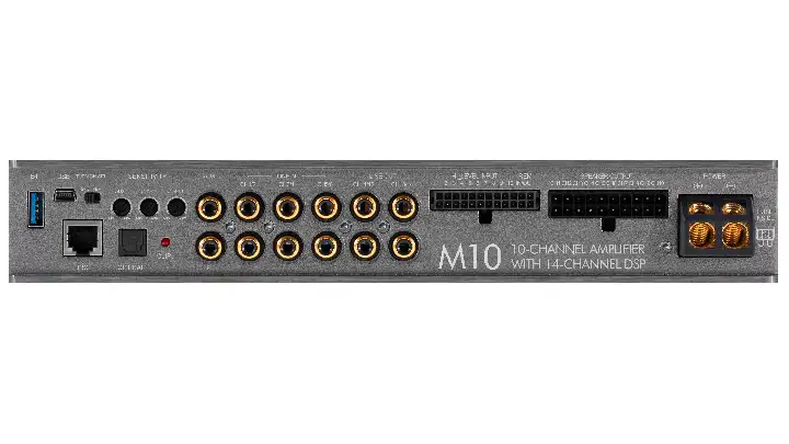 Âm-ly kèm DSP với 12 kênh ra công suất có thể để ở chế độ chập cầu BTL, mỗi kênh ra cung cấp 120 watt RMS trên mỗi kênh (2 Ω), âm-ly tích hợp DSP M12 cung cấp công suất đầu ra đáng nể với tổng tới 1.440 watt RMS.