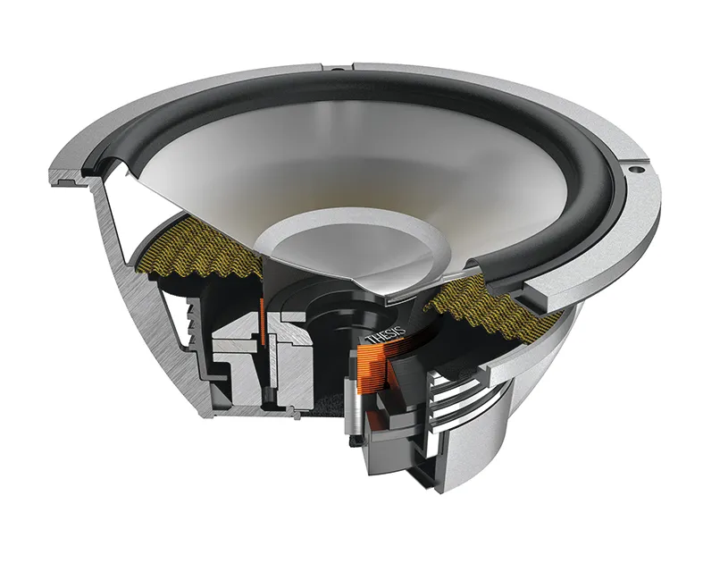Màng loa được làm từ vật liệu TPX® đặc biệt, giúp giảm sai lệch dải tần trung – cao và đảm bảo âm thanh mượt mà ở nhiều góc nghe khác nhau. Hệ thống treo (surround + spider) được tối ưu cho hành trình dài, đảm bảo chuyển động tuyến tính và hạn chế méo cơ học ngay cả khi hoạt động ở cường độ cao.