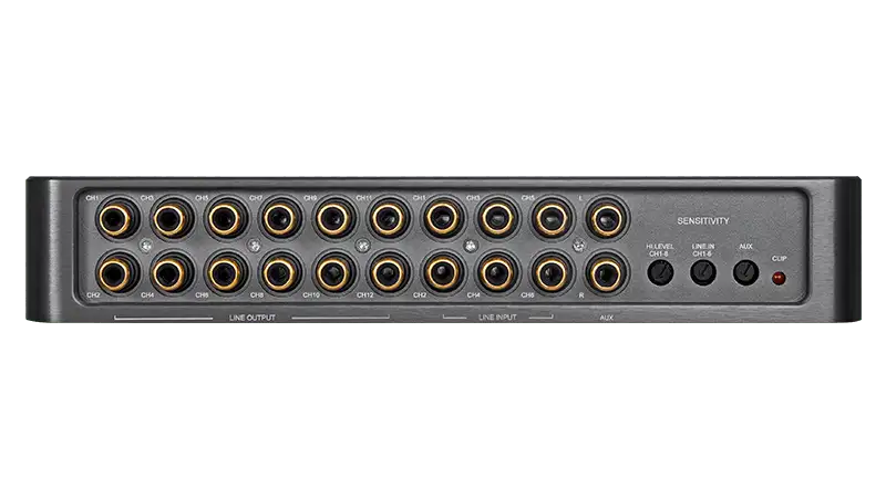 • Separately adjustable input sensitivity (CH1-8 high level, CH1-6 low level, AUX)