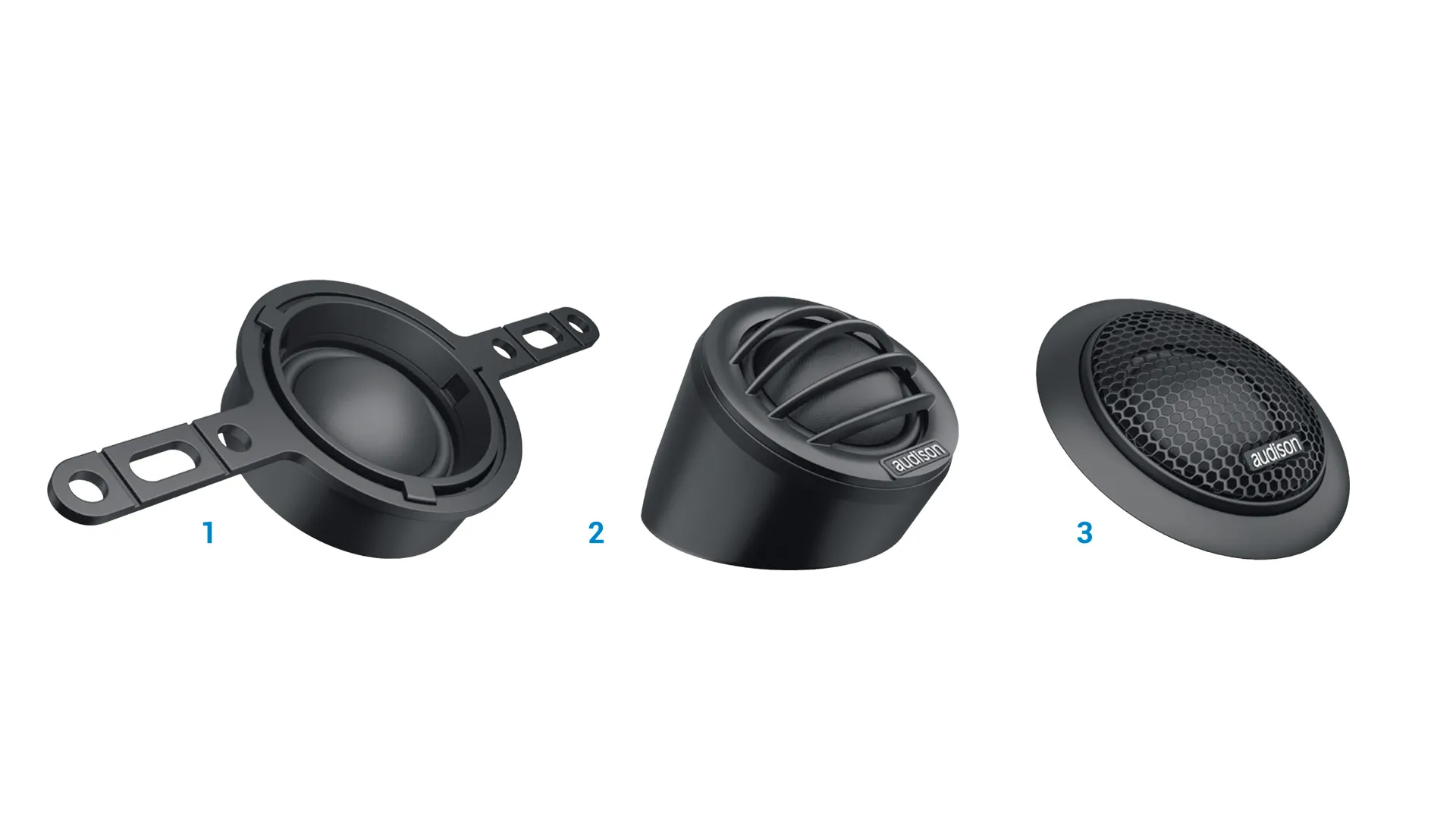 Tweeter AP 1P sử dụng công nghệ AIF (Any Install Faceplate) với 3 kiểu mặt lắp khác nhau, giúp linh hoạt thi công ở nhiều vị trí như taplo, cột A hoặc cửa xe, đồng thời giảm thời gian lắp đặt đáng kể.
